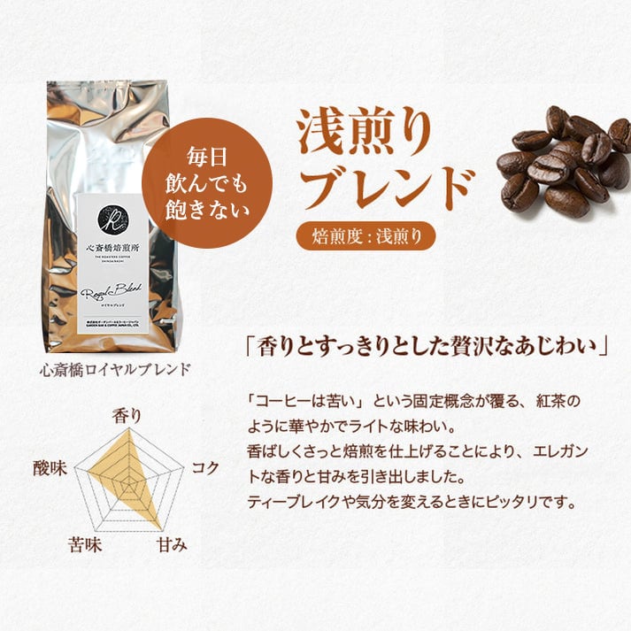 香ばしくさっと焙煎を仕上げることにより、エレガントな香りと甘みを引き出しました。